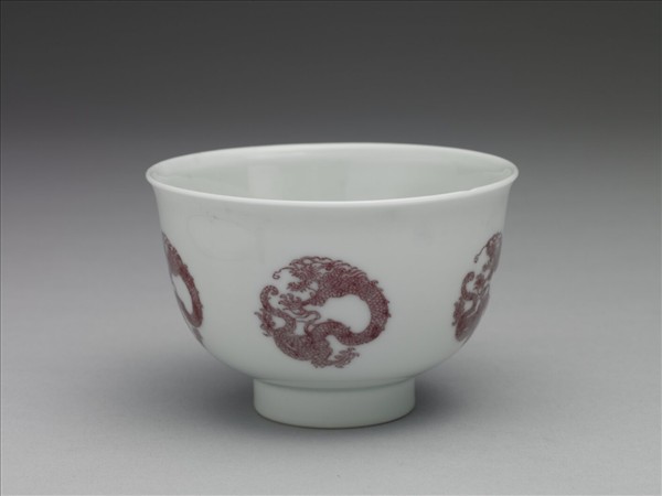 白瓷釉裡紅團龍紋杯
