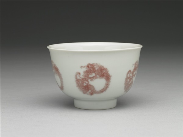 白瓷釉裡紅團龍紋杯