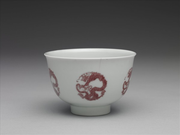 白瓷釉裡紅團龍紋杯
