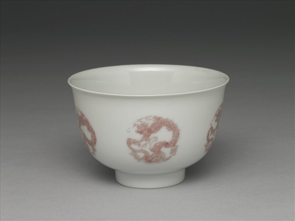 白瓷釉裡紅團龍紋杯