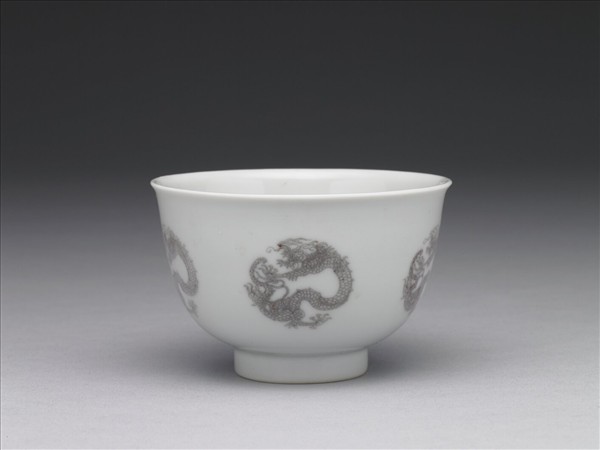 白瓷釉裡紅團龍紋杯