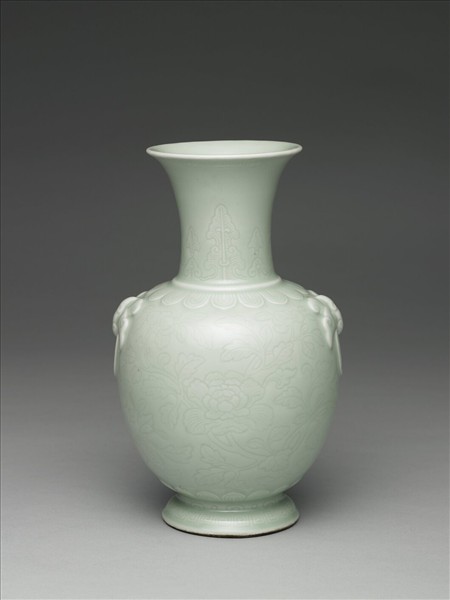 青瓷暗花花卉紋蝶耳瓶