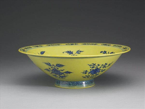 青花黃地花卉紋碗