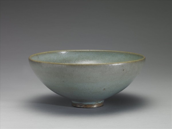斂圓口,深弧壁,平底,矮圈足,足壁略外撇。通體罩施青灰色釉,顏色淺淡趨近月白釉。施釉至足際,足壁、底緣和內周壁無釉處,皆露土色胎。足底緣修飾不整,裏緣高過外緣。