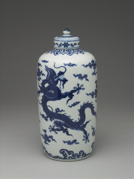 青花夔龍紋蓋罐