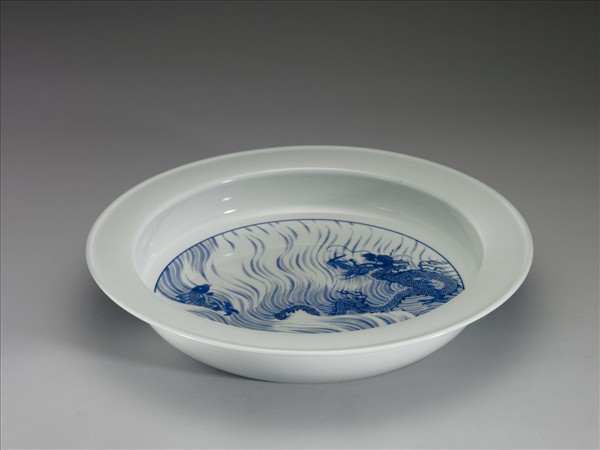 青花魚龍紋折沿洗