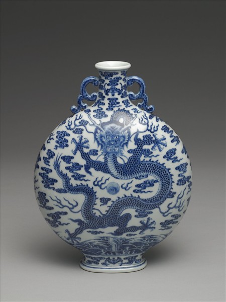 青花雲龍紋雙耳扁壺