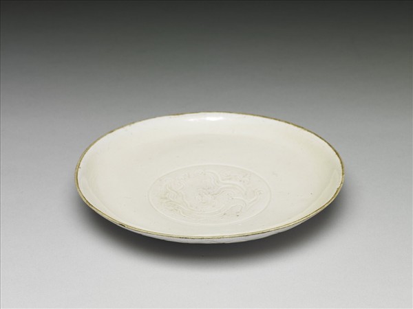 定窯 白瓷劃花螭龍紋碟