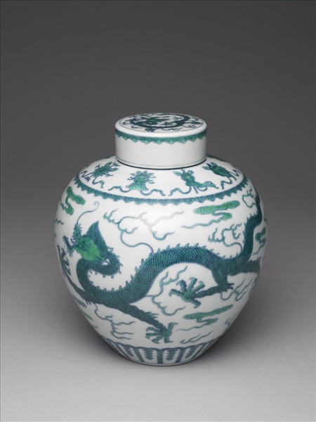 鬥彩綠龍紋蓋罐