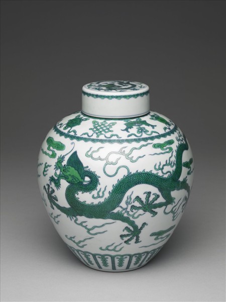 鬥彩綠龍紋蓋罐