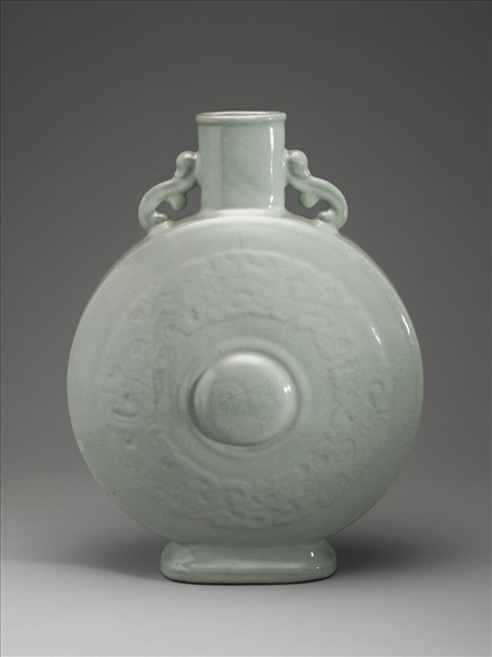 青瓷龍紋雙耳扁壺