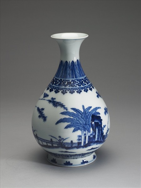 青花庭園小景圖瓶