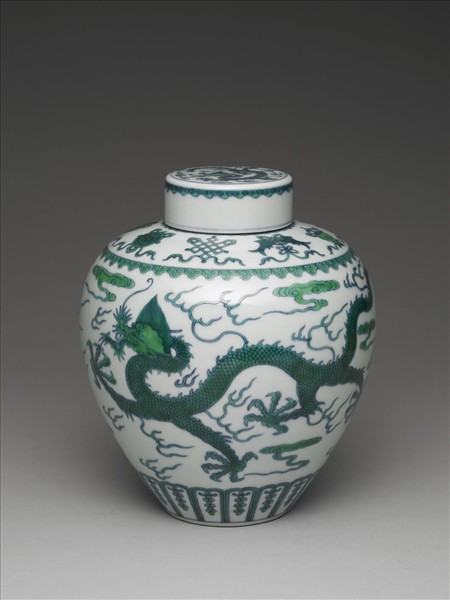 鬥彩綠龍紋蓋罐