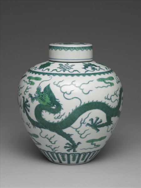鬥彩綠龍紋蓋罐