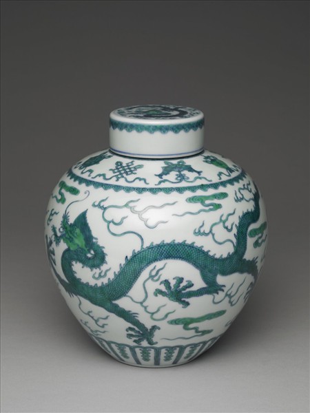 鬥彩綠龍紋蓋罐