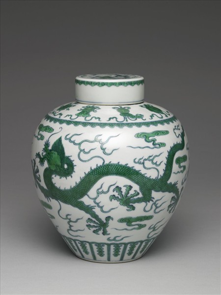鬥彩綠龍紋蓋罐