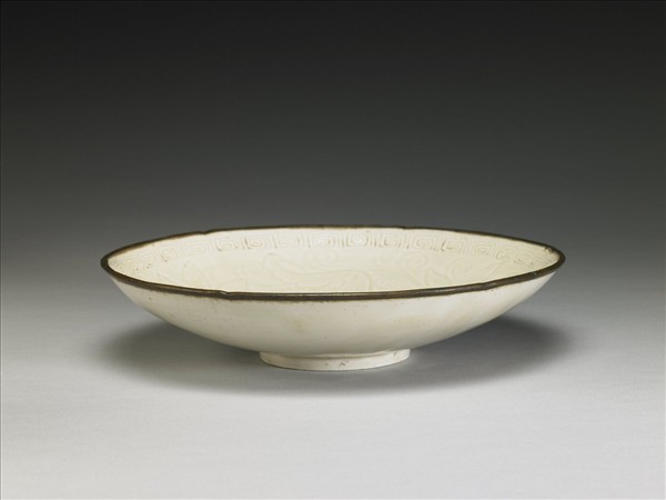 定窯 白瓷劃花螭龍蓮荷紋盤