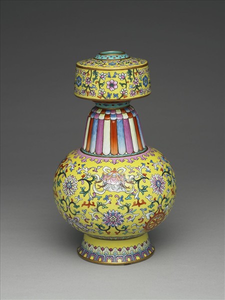 洋彩黃地番蓮紋瓶