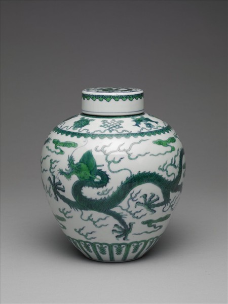 青花綠彩龍紋蓋罐