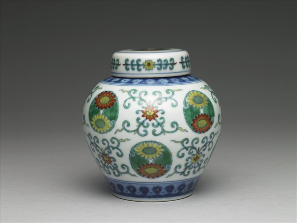 鬥彩團花紋蓋罐