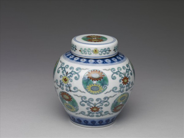 鬥彩團花紋蓋罐