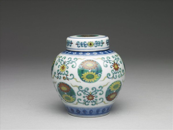 鬥彩團花紋蓋罐