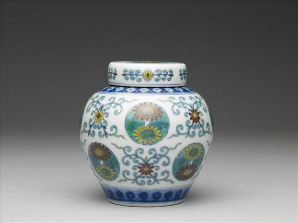 鬥彩團花紋蓋罐