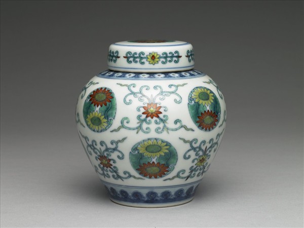 鬥彩團花紋蓋罐