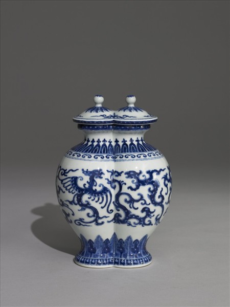 青花龍鳳紋雙連蓋罐