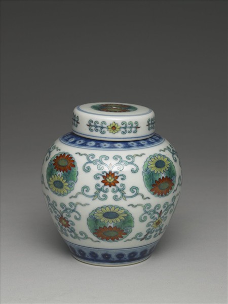 鬥彩團花紋蓋罐