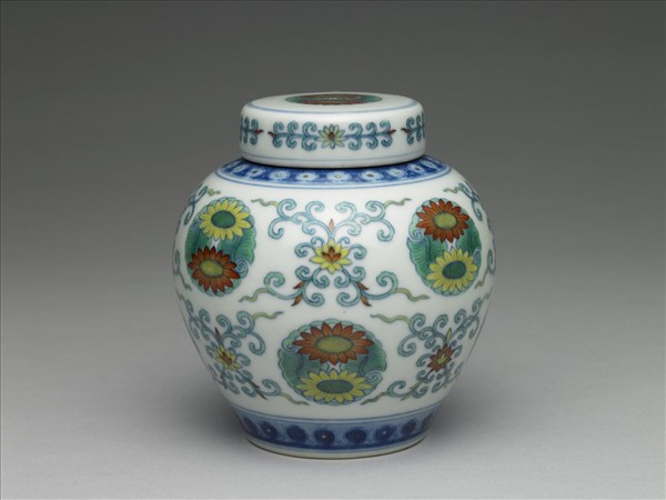 鬥彩團花紋蓋罐