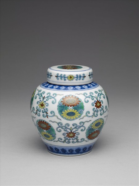 鬥彩團花紋蓋罐