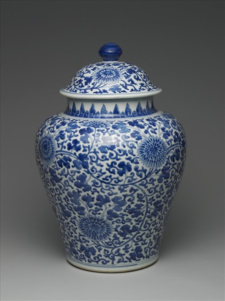 青花纏枝菊花紋蓋罐