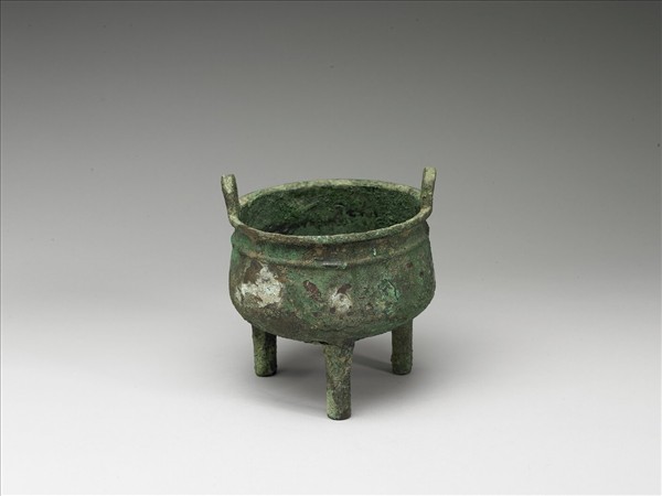 侈口,立耳,柱形足,器面為重鏽所掩,範線不明,底面範作三角形,近口處飾弦紋一道,底外依足留有三角範線,並有「△」形陽畫。器內壁有銘文三行十四字。