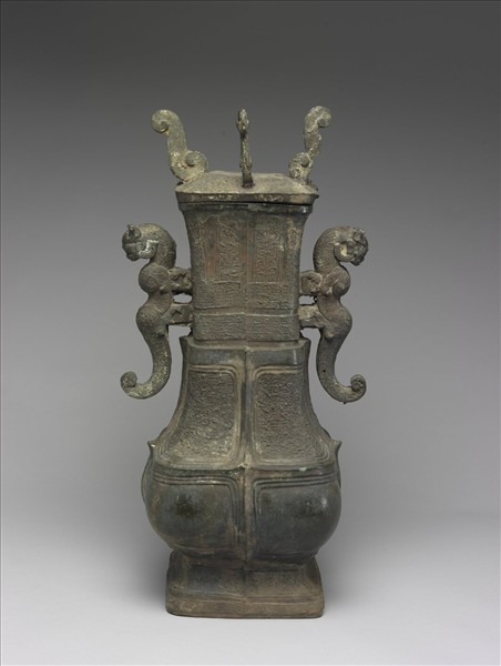 體呈橢方形,微侈口,長頸、垂腹、方圈足,頸部有一對顧龍形耳。蓋呈盝頂形,上有四個S形鈕。頸部飾仰葉紋及兩條蟠虺紋飾帶,腹部以十字形凸帶分成八個區間,上部四個區間填飾蟠虺紋,下部四個區間素地無紋。兩壺器口內壁鑄有相同銘文五行三十九字:「隹(唯)王廿又六年,聖𧻚之夫人曾姬無卹,(吾)安茲漾陵,蒿間之無匹馬,甬(用)乍(作)宗彝尊壺,後嗣甬(用)之,(職)才(在)王室。」 銘文記述楚宣王二十六年(西元前344),楚聲王的夫人曾姬無卹為自己在漾陵蒿間選擇葬地。《史記•楚世家》記載楚聲王即位六年為盜所殺,是曾姬無卹早年喪偶,晚年自知不能與楚聲王合葬,因此製壺為銘記錄獨葬之處,其用意是希望楚王室不要忘了祭祀她。壺銘字體屬於典型的戰國楚系文字,銘文內容具有史料價值。與中銅393為一對,相傳為民國二十一年(1932)出自安徽壽縣朱家集李三孤堆楚幽王墓,後為劉體智先生所藏,終為本院重器。
