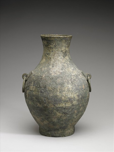 圓形大腹壺,兩獸面銜環耳,器腹花紋為鏽掩,未經剔除,是生坑現象。1928年洛陽金村出土。根據頸上十三字銘文:「廿九年十二月為東周左(官)□(飲)壺」,此器為東周顯王二十九年(西元前340)左師作,是東周極少數遺存的銅禮器。