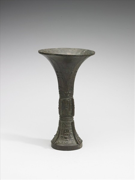 敞口,細腰,腹與足之間有十字形孔二,其中一孔穿透,腹部與圈足各有四稜脊,分居四面;腹底平,圈足稍高,在其內壁與腹底相接處,有三支柱斜撐作加固用。頸部有蕉葉獸面紋四,腹部飾獸面紋及羽紋,上端兩兩相對蛇紋,圈足亦飾獸面,上飾夔龍紋四,腹足之間有弦紋二道,全器未襯地紋,有簡樸之感。銘文五字,鑄於圈足內壁。全銘以「亞」字作框廓,內含四字「父乙長莫」,「長莫」疑是莫氏之長,其為宗廟內祭祀「父乙」而製此盛酒禮器。