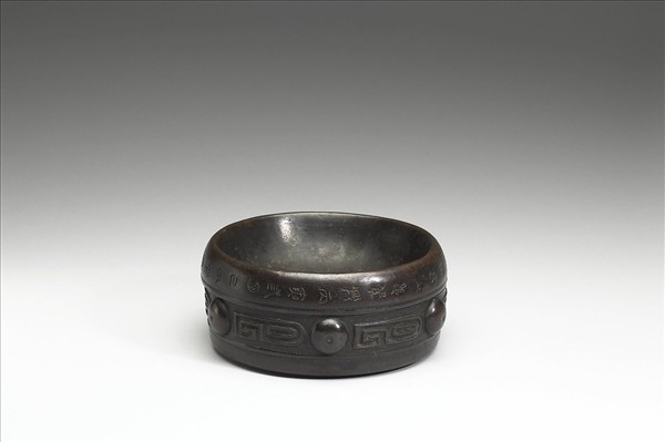 直壁斂口盆式,淺腹。器腹以橫弦紋為上下界,鑄成淺浮雕幾何式的迴轉圖案,形成類似西周晚期重環紋的裝飾,並間以突出的圓形乳丁紋。與法國賽努奇亞洲博物館藏帶有豆柄之〈北宋政和豆〉相對照,此器原應有豆柄,現已佚失。口沿外壁鑄有銘文一圈二十八字:「唯紹興丙寅三月乙丑,帝命作豆,賜師臣檜家廟,以薦菹醢,唯予永世用享。」此器曾經劉體智收藏。