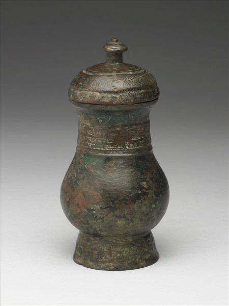 侈口,S型腹壁曲線有蓋(子口在蓋上)觶。蓋飾斜角雲雷紋,中間為飾有渦紋的柱鈕。器上飾三行式夔紋合成的獸面紋,圈足上則飾夔紋。主紋為寬帶浮雕陽紋,餘則為層次等高的雷紋。銘文「亞醜」在腹底。