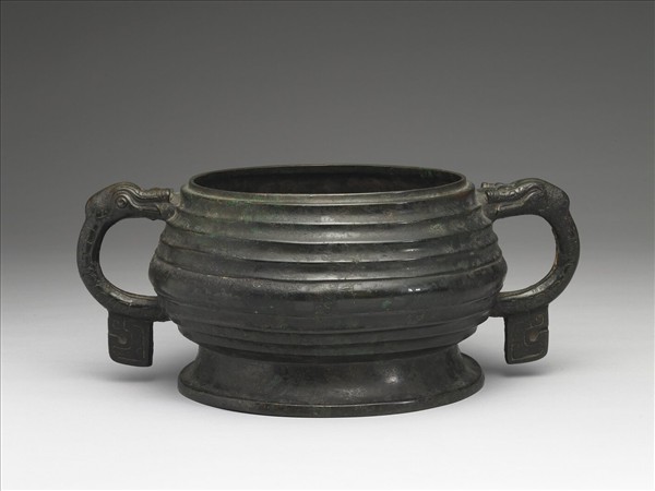 斂口,鼓腹,腹側為環狀雙耳,耳上部為浮雕獸首,耳下部為方形垂珥,圈足外撇,近底處起淺臺。器身飾瓦紋。形制相近者如陝西扶風強家村出土的瓦紋簋。銘文在器內底。《西清古鑑》卷二十一頁一錄有器和蓋,現僅存器,蓋失。