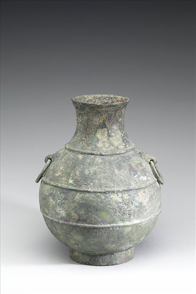 圓壺,鼓腹、圈足,肩上二獸面銜環。頸飾三角形紋,肩、腹飾弦紋。頸部有銘二行四字。