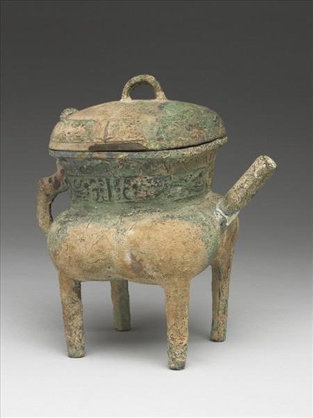 蓋與器上切面成圓角四方形,腹切面成四瓣形,嘴圓筒狀,蓋緣與器身頸部同為二組對稱式鳥紋,蓋與器一繯綰連。器蓋內有銘文二行十三字。