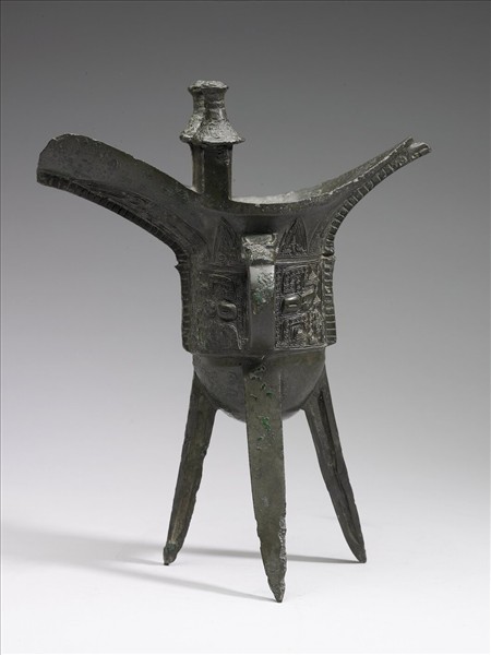 卵型腹三足爵。頸飾三角紋,腹飾獸面紋,流與尾皆飾蕉葉紋,立柱飾以雲雷紋。主體花紋鼓出,與襯底雷紋形成複層花紋。鋬飾牛首,鋬陰有銘一字「子」,河南新鄉出土有一對觚,與此爵銘文相同,可能屬同一氏族鑄器。此器的特點在於除器身有棱脊外,流與尾皆有棱脊,此特點與殷墟婦好墓的婦好平底爵相近,而罕見於其他爵,三棱形足二側皆有凹槽亦罕見。本器是乾隆三十四年(1769)頒賜國子監的「周笵十器」之一,名之為「周子爵」。