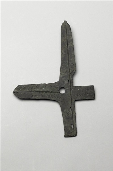 戈與矛聯鑄的連體戟。戈援帶脊,上有三道直稜,援後端一圓穿。援上刃向上沿伸形成矛;援下刃向下延伸成胡。帶三方穿。內上有陰文「侯」一字。本院侯戟為容庚舊藏,《頌齋吉金錄》紀錄傳出於濬縣。濬縣辛村二號墓亦出土一侯戟,銘文一致且形制類似。此戟體輕質薄,可能非實戰用器。