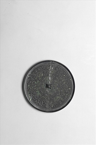 圓鏡,圓鈕、凸弦紋鈕座。內區銘文帶十二字,外區飾蟠螭紋。