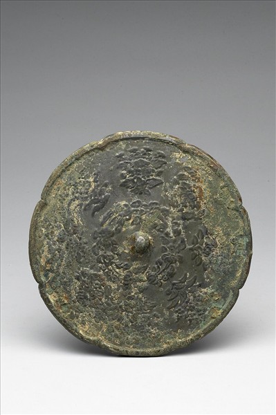 圓鏡,作八瓣花形、圓鈕。鏡背飾寶相花紋。