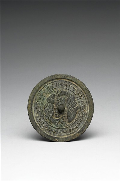 圓鏡,圓鈕。內區飾雙魚,銘文帶二十六字。
