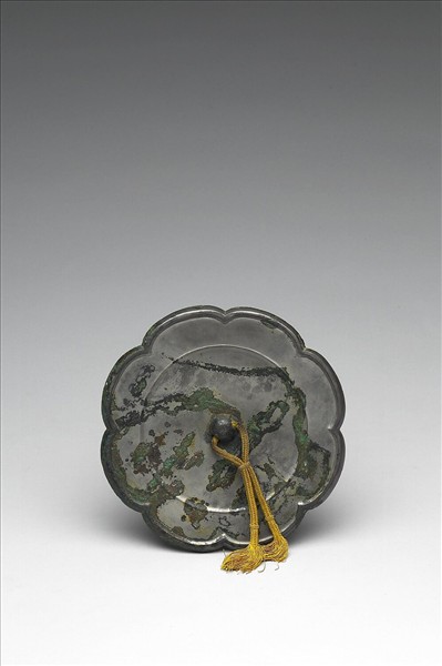 圓鏡,作八瓣葵花形、半球鈕。鏡背飾一圈凸棱。