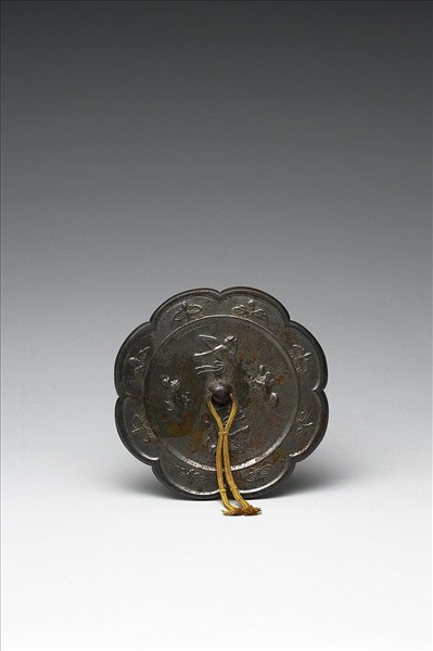 圓鏡,作八瓣葵花形、半球鈕。鏡背飾飛鳥與水禽各兩隻,鏡緣上則有蜜蜂與花枝間隔排列。