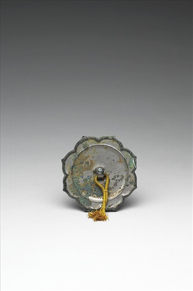 圓鏡,作八瓣菱花形、半球鈕。鏡背飾一圈凸棱。